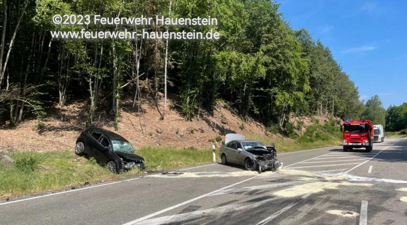 Bericht: Verkehrsunfall mit zwei PKW, beim Eintreffen der ersten Kräfte waren alle Personen aus ihren PKW befreit.