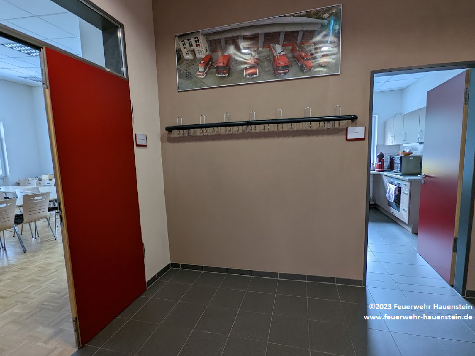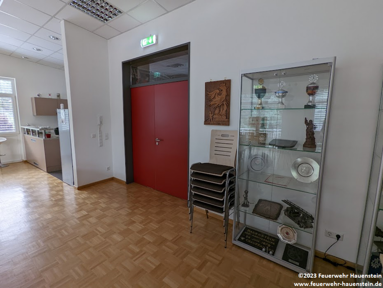 Der große Schulungsraum befindet sich im ersten Stock und ist ein wichtiger Treffpunkt zur Pflege der Kameradschaft.