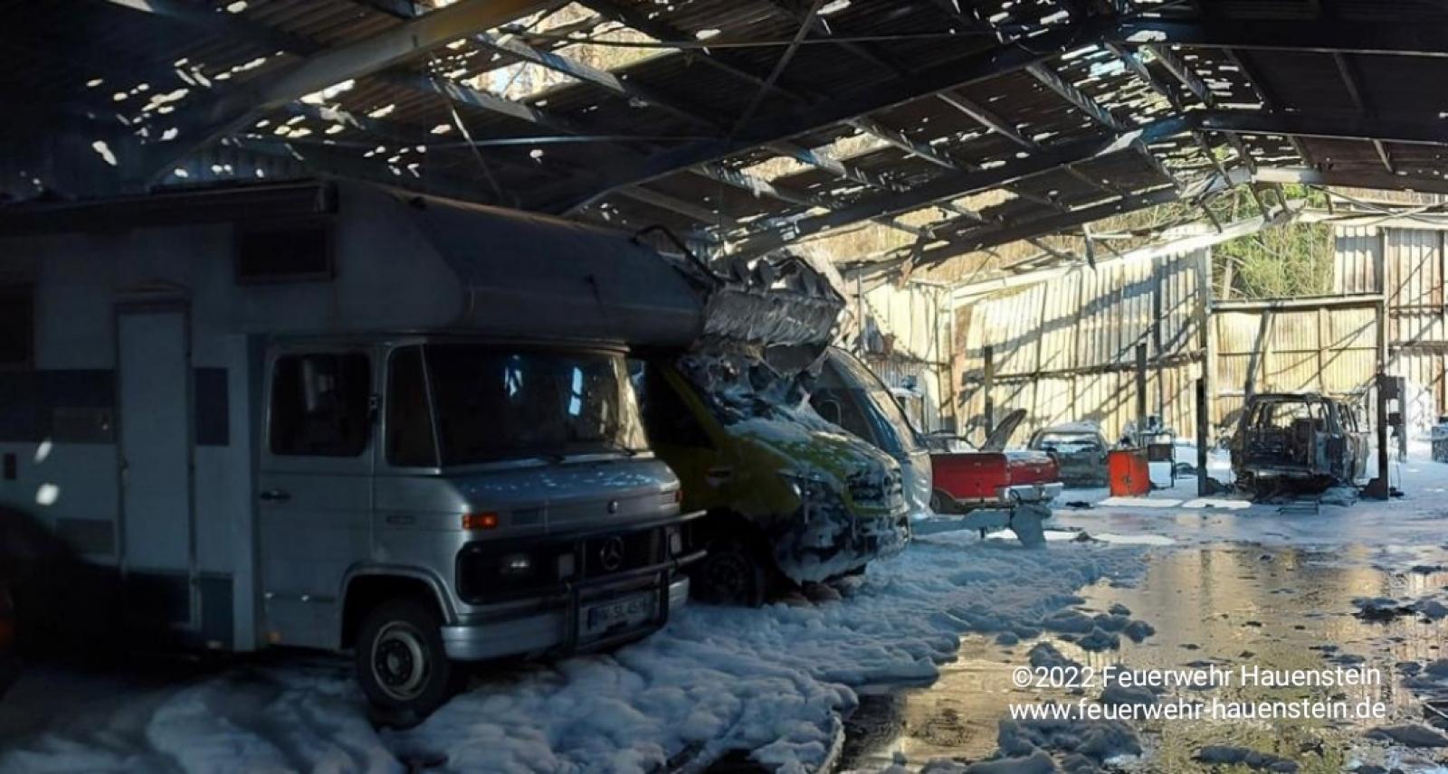 Bericht: Gegen 9 Uhr wurde unser ELW 1 gemeinsam mit der bei uns stationierten Atemschutzkomponente nach Busenberg zu einer brenenden Lagerhalle alarmiert. Der Einsatzleitwagen übernahm zusammen mit der Feuerwehr Einsatzzentralle in Dahn die Führungsunterstützung für den Einsatzleiter und die beiden Einsatzabschnitte. Nach dem die Atemschutzkomponente an der Einsatzstelle abgeladen war wurden mit dem MZF weitere Versorgungsfahrten durchgeführt. so wurde unter anderem Schaummittel zur Einsatzstelle verbracht.
