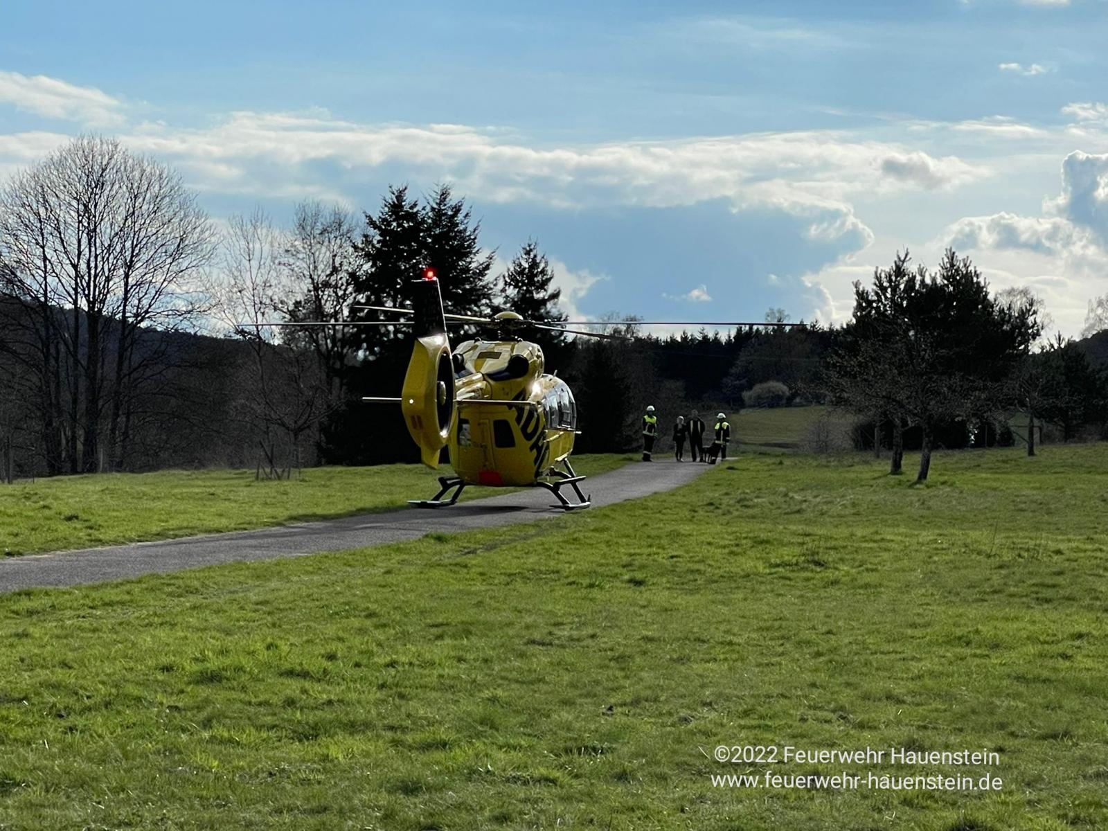 Bericht: Vor Ort wurde ein Patient im Badezimmer vorgefunden. Gemeinsam mit der Feuerwehr Spirkelbach wurde der Rettungsdienst dabei unterstützt den Patienten aus dem engen Raum zu befreien um eine Versorgung durchzuführen. Für den ebenfalls alarmierten Rettungshubschrauber wurde ein Landeplatz am Ortsrand abgesichert.