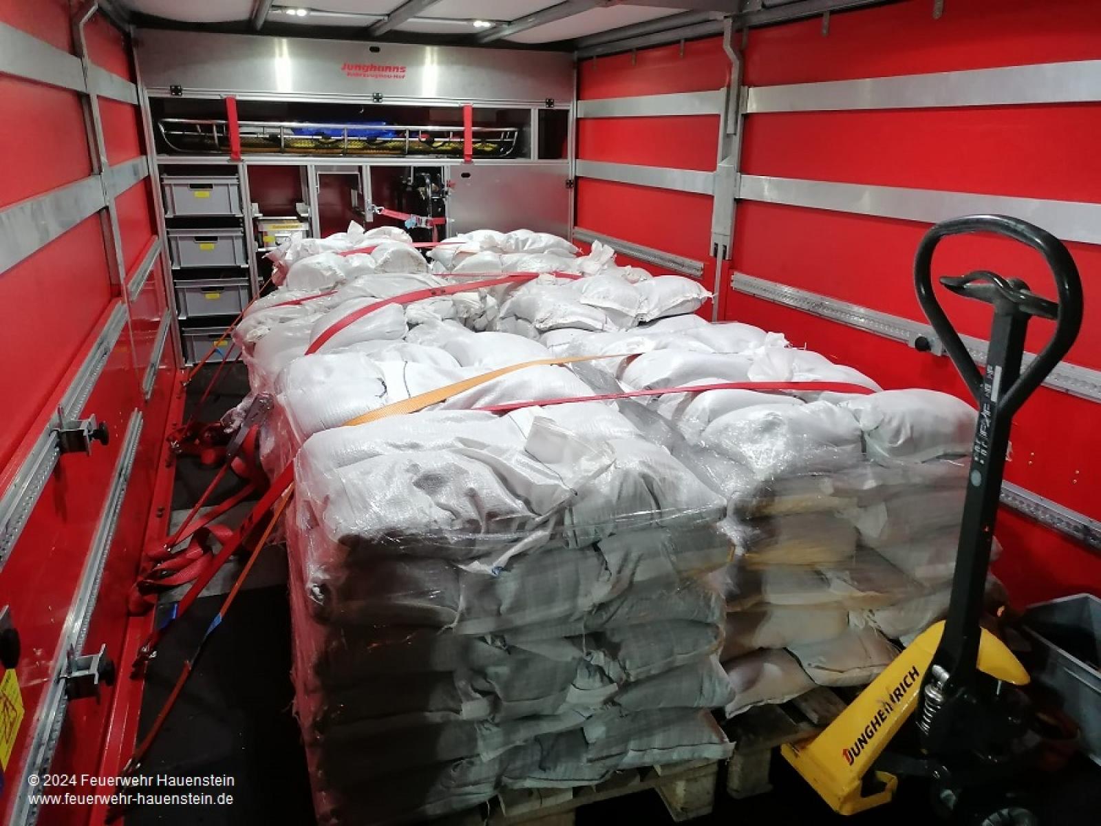 Für den Selbstschutz der Bevölkerung wurden in Wilgartswiesen gefüllte Sandsäcke ausgegeben. Diese wurden durch das THW in Hauenstein gefüllt.
